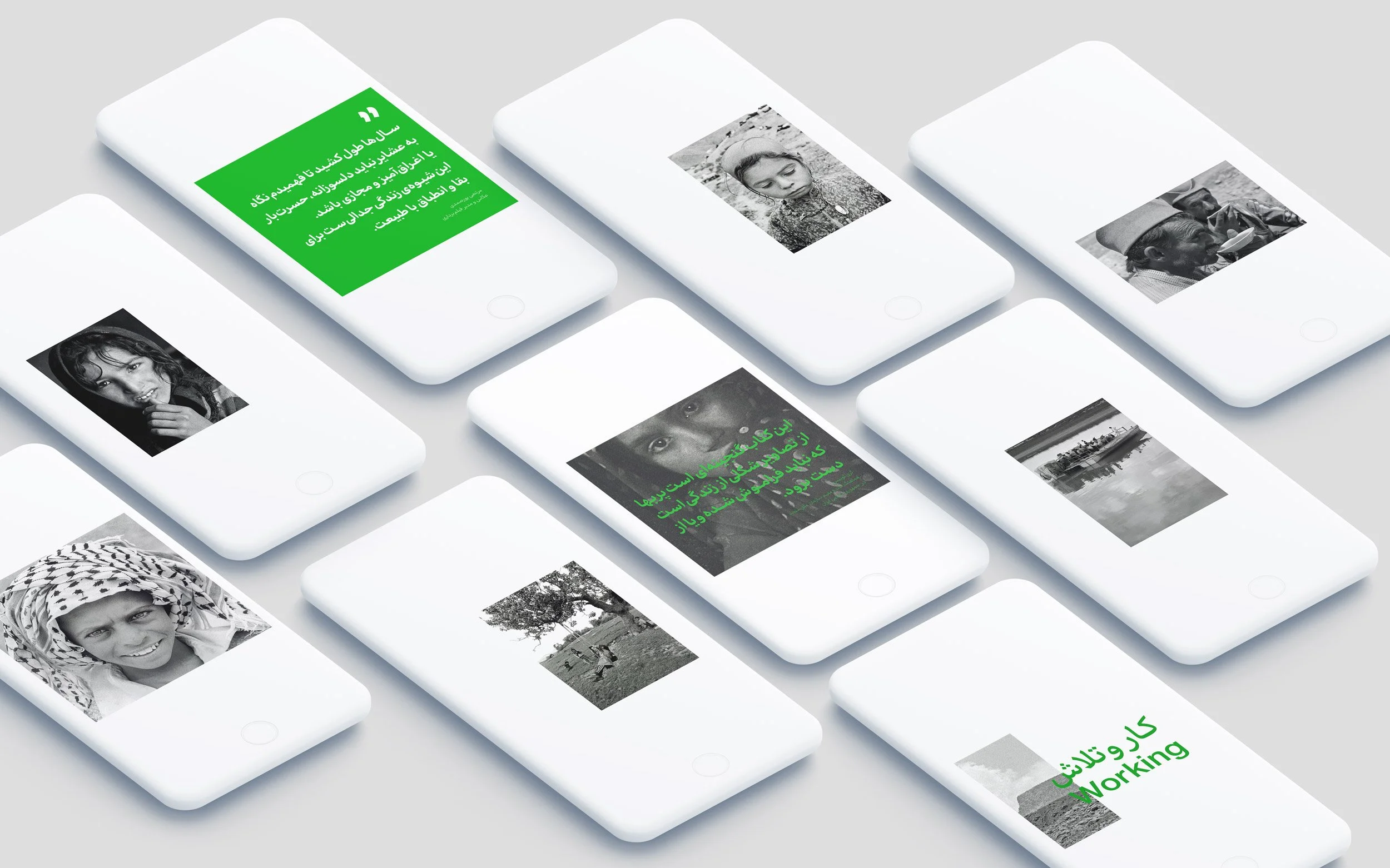 Morteza Poursamadi explains in his forward that the primary reason for nomadic migration is their search for “grass” to feed their livestock on natural pastures. Nomads spend winters in tropical areas and summers in cold places. As a result, we chose the colour green for the collateral materials related to the book launch.