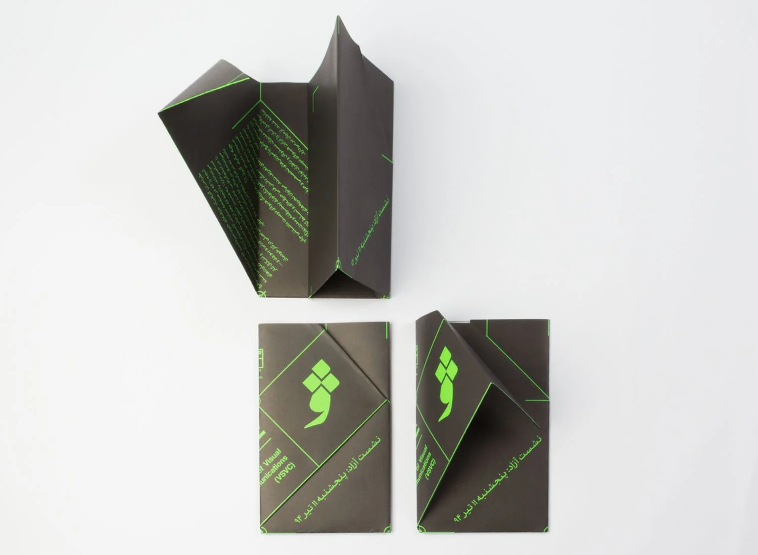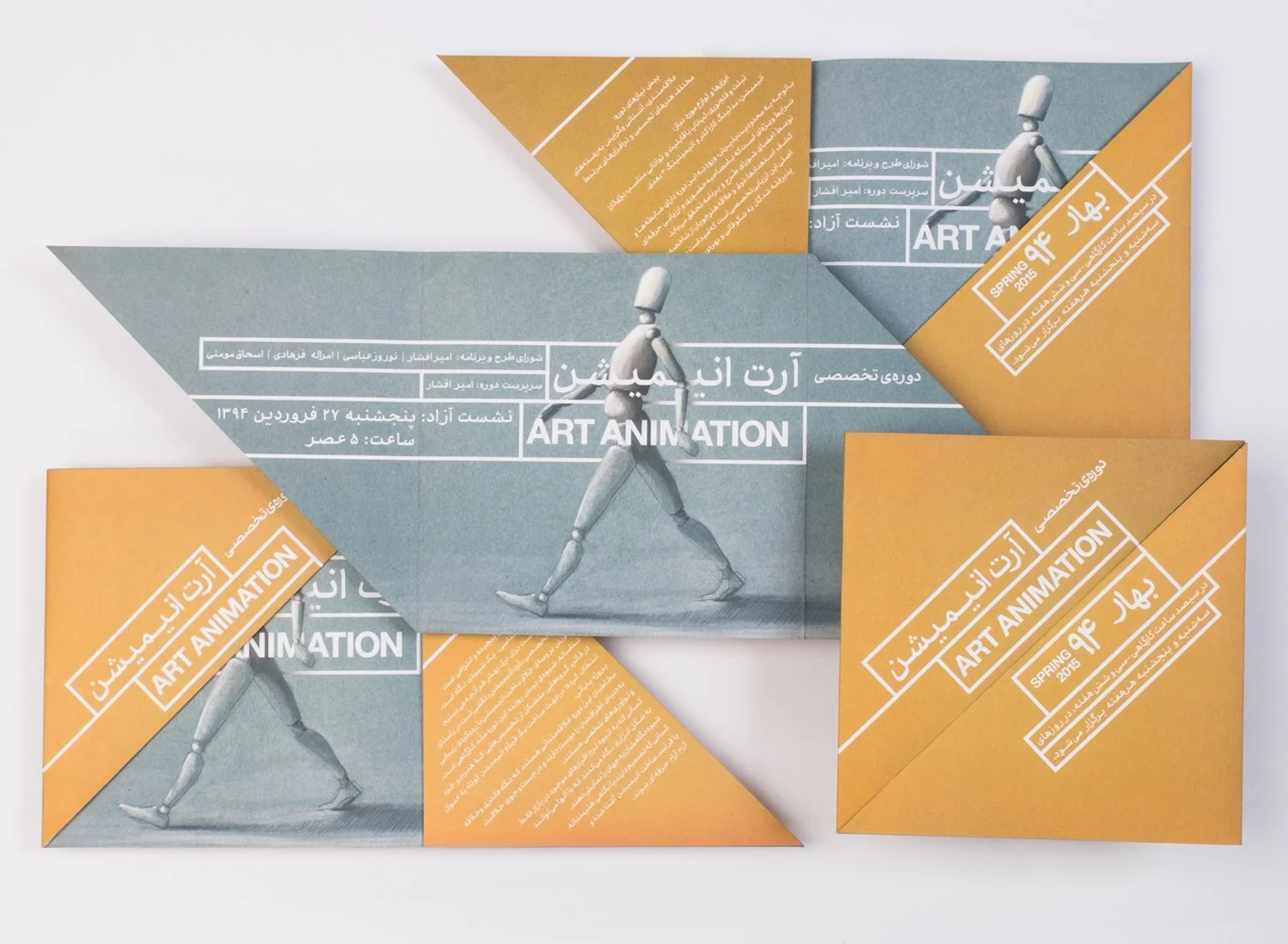 The fold lines merge into the design, creating an intriguing poster. The unfolding process allows for a slow and partial content revelation and makes a lasting impact on viewers, even after being displayed.
